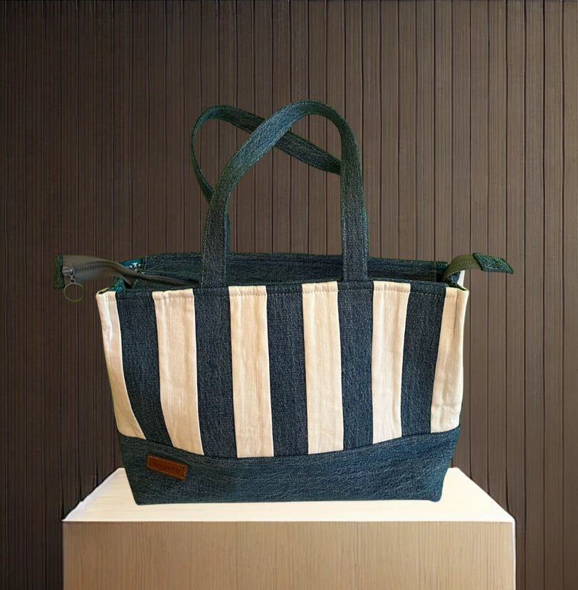 Patchwork aus Jeansstoff blau/weiss