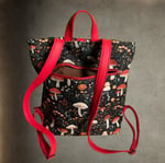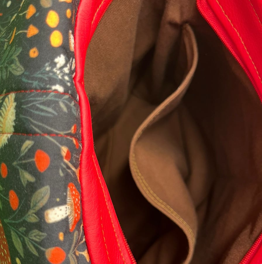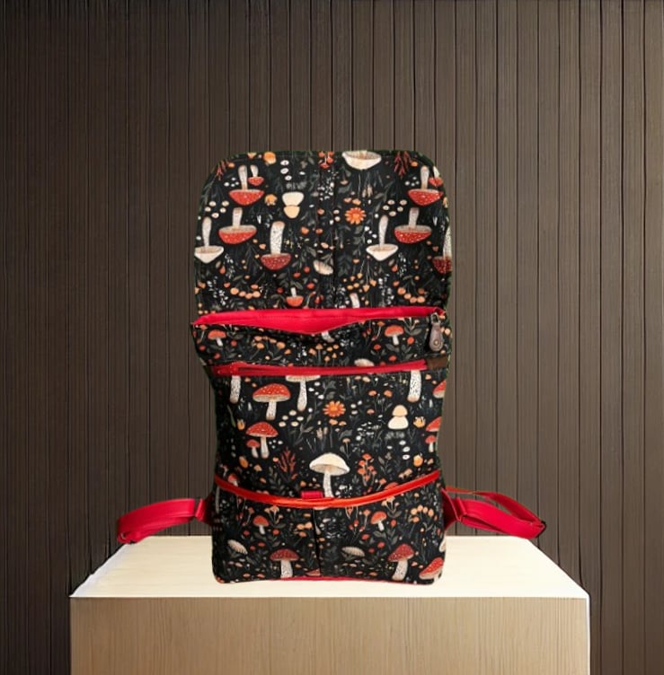 Aus Syntheticstoff schwarz mit Pilzdruck und Kunstleder rot