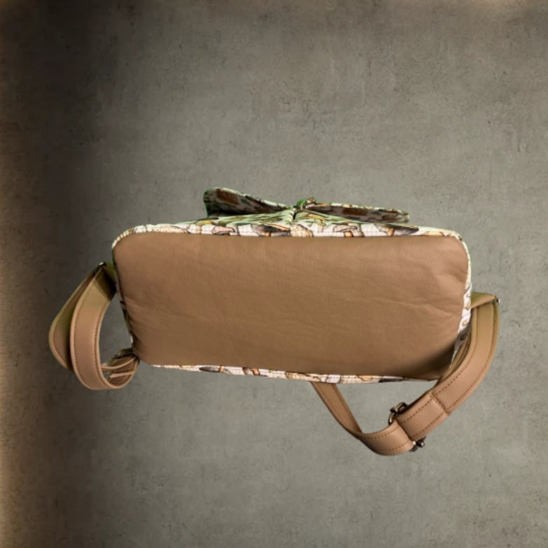 Aus Syntheticstoff weiss mit Pilzdruck und Kunstleder braun