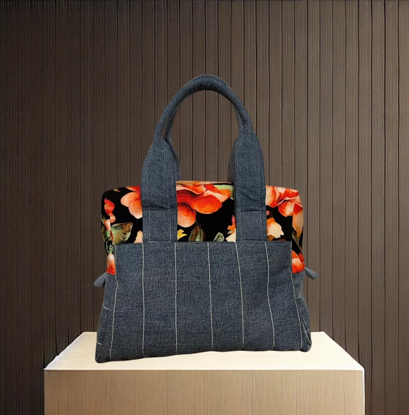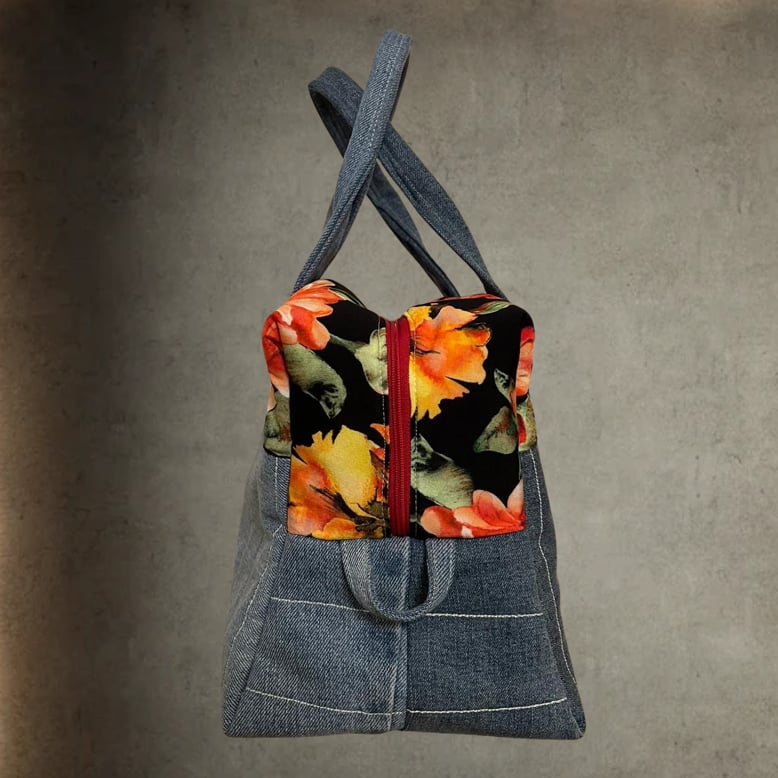 Stilvolle Tragtasche aus Jeans und Jersey