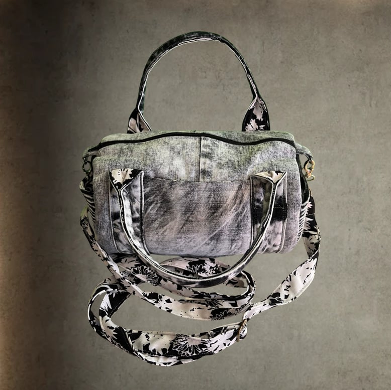 Peppige zylinderartige Tragtasche aus der alten Jeans meines Sohnes