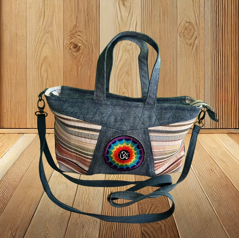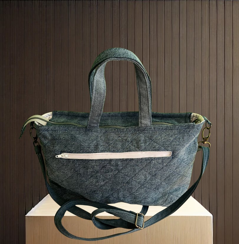 Farbenfrohe abgesteppte Tragtasche aus Jeansstoff